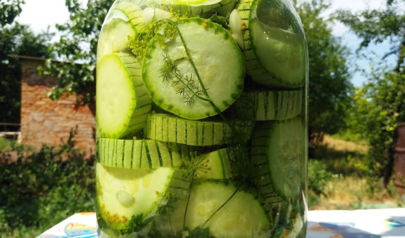 . Į stiklainį sudėkite griežinėliais supjaustytą cukiniją.