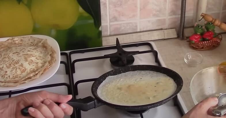 - Kiaušinius suplakite su pienu ir druska. Kepkite ant lengvai riebalais pateptos keptuvės, kol iš abiejų pusių paruduos.