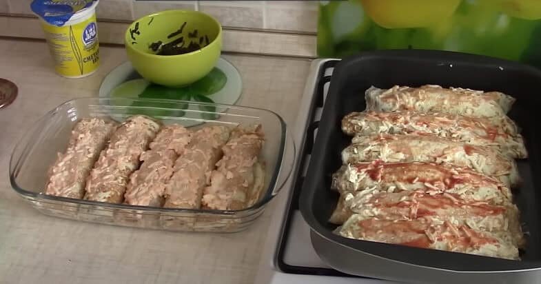 - Ištepkite formą aliejumi, išdėliokite suktinukus, užpilkite padažu. Kepkite pusvalandį 180 laipsnių temperatūroje.