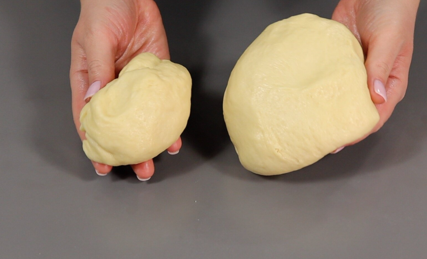 Kai tešla pakils, padalykite ją į dvi dalis: didesnę (apie 2/3), kuri bus pyrago pagrindas, ir mažesnę (1/3), skirtą viršui. Paruoškite 24 cm skersmens formą.
