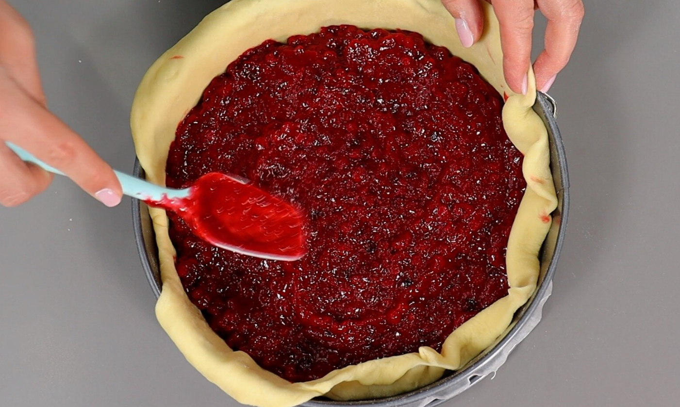 Šis pyragas – puikus sprendimas tiems, kurie trokšta ko nors skanaus ir sotaus. Jame daug įdaro, tačiau jis išlaiko formą, o tešla išlieka minkšta ir oro, neprarasdama tekstūros net po kelių dienų. Įdarui galite naudoti bet kokias uogas, tačiau spanguolės suteikia ypatingo malonaus rūgštumo.