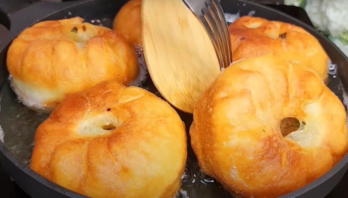 Keptuvėje augaliniame aliejuje kepkite paplotėlius pirmiausia skylute žemyn. Kepkite, kol iš abiejų pusių taps auksinės spalvos.