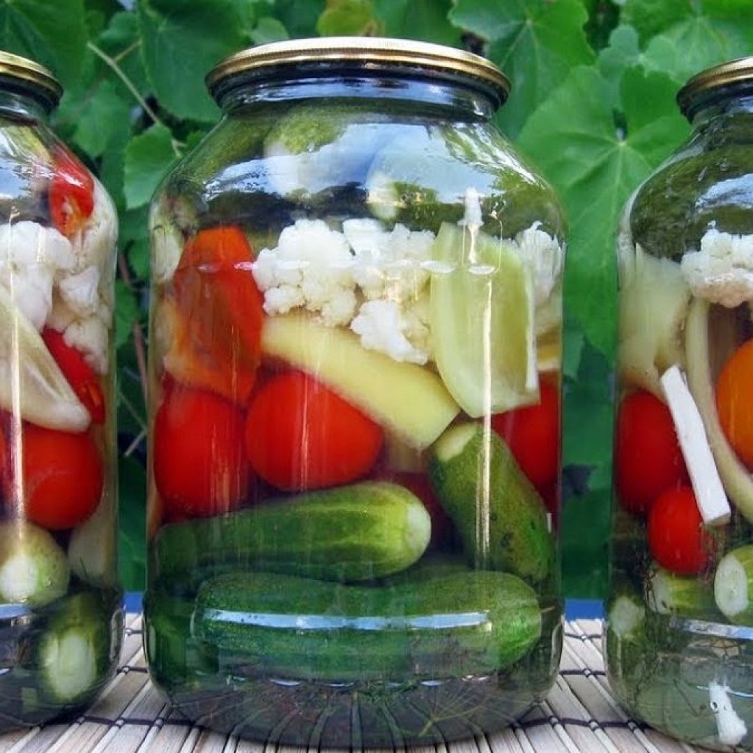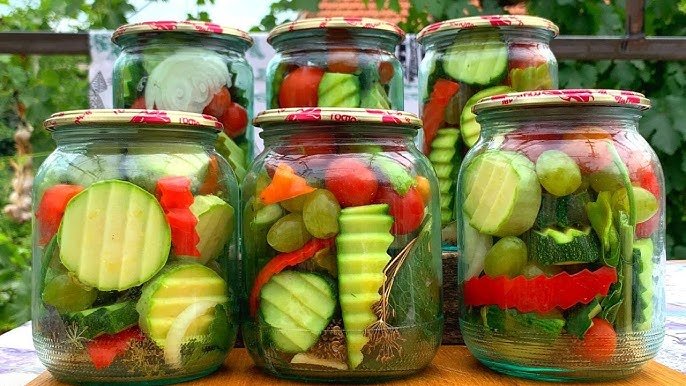 - po 1 kg prinokusių pomidorų ir jaunų agurkų;