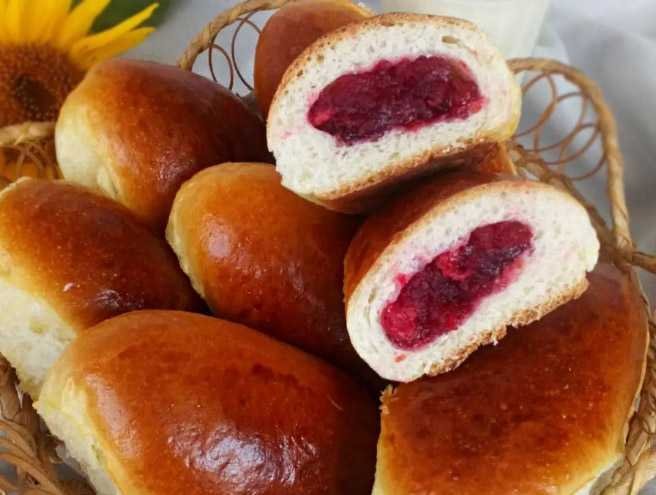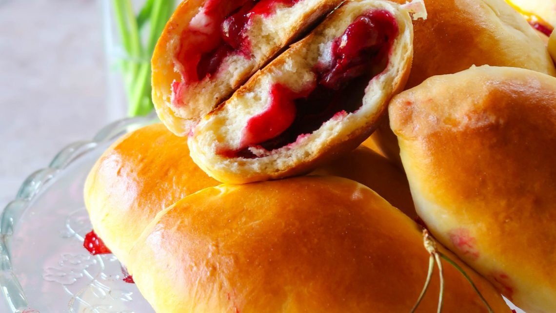 7. Paruoštus pyragėlius sudėkite ant kepimo skardos ir palikite 20 minučių pastovėti. Aptepkite kiaušinio tryniu ir pusvalandžiui pašaukite į orkaitę.