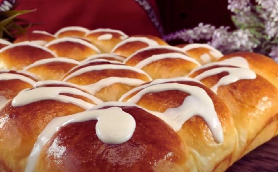 Kol bandelės kepa, pasigaminkite tokį padažą: minkštą sūrį sumaišykite su kondensuotu pienu. Kai bandelės atvės, užpilkite jas šiuo padažu. Štai ir viskas – gardžios vokiškos bandelės paruoštos.
