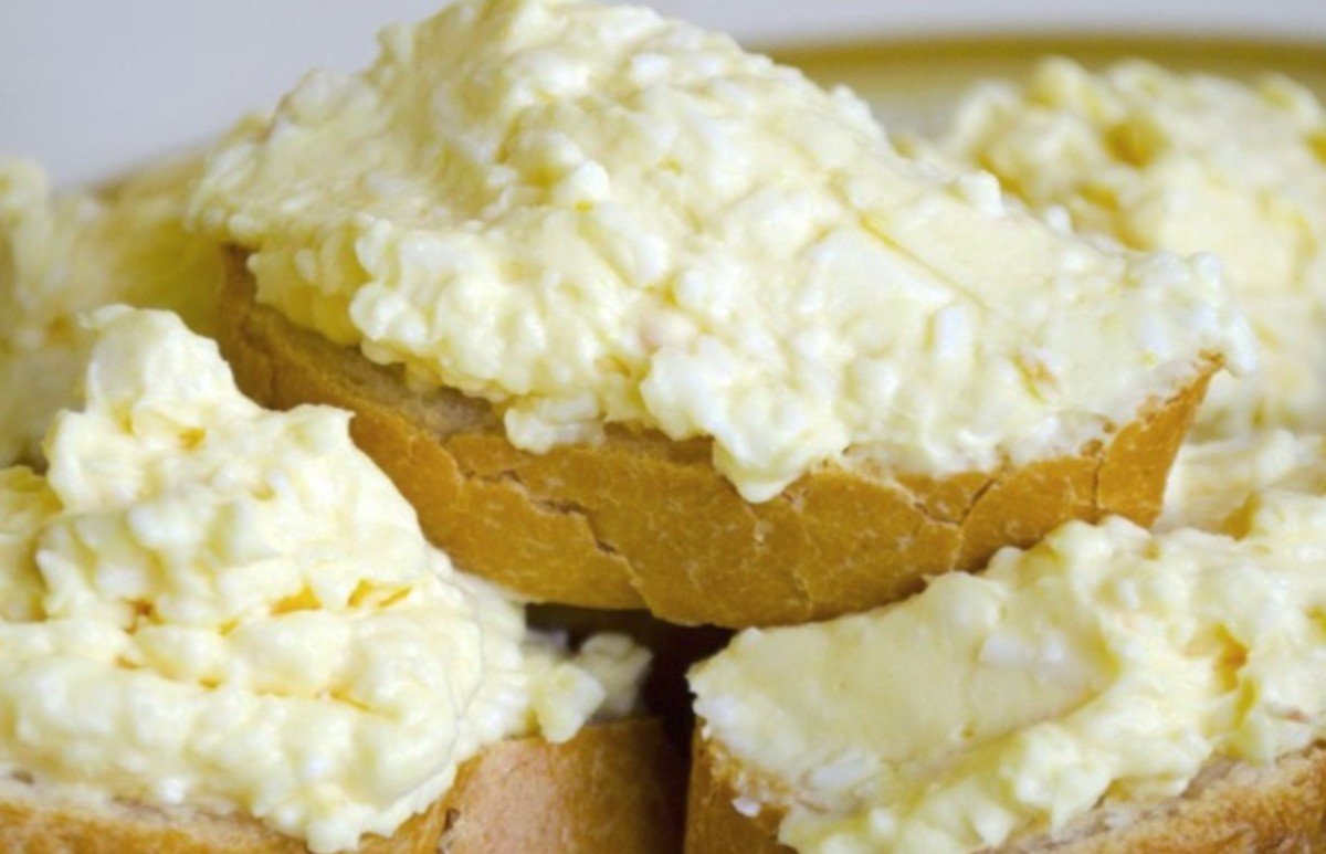 visus ingredientus sumaišykite. Ant sausos įkaitintos keptuvės šiek tiek paskrudinkite duoną ir užtepkite ant jos masės.