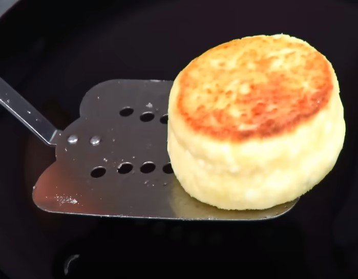 - Įkaitinkite keptuvę, įpilkite šiek tiek aliejaus ir kepkite sūrio pyragėlius, kol paruduos.