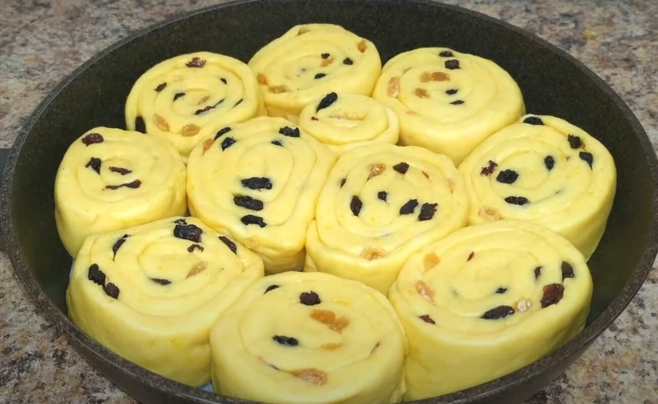 . Skardos dugną išklokite pergamentu. Ant dugno glaudžiai sudėkite ritinėlius. Uždenkite keptuvę dangčiu ir palikite 10 minučių.