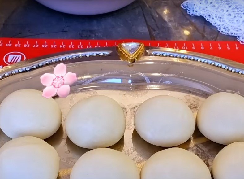 Padalykite tešlą į 8 lygias dalis ir suformuokite iš jų rutuliukus.