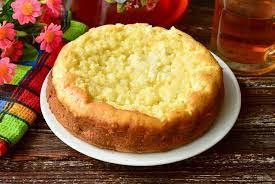 Į tešlai ruošti skirtą preparatą persijokite miltus ir įberkite actu gesintos sodos. Gautą masę supilkite į formą, išlyginkite. Ant viršaus sudėkite varškės masę. Šaukite ruošinį į orkaitę, jos neįkaitinkite, nustatykite 200 laipsnių temperatūrą ir palaukite 35 minutes.