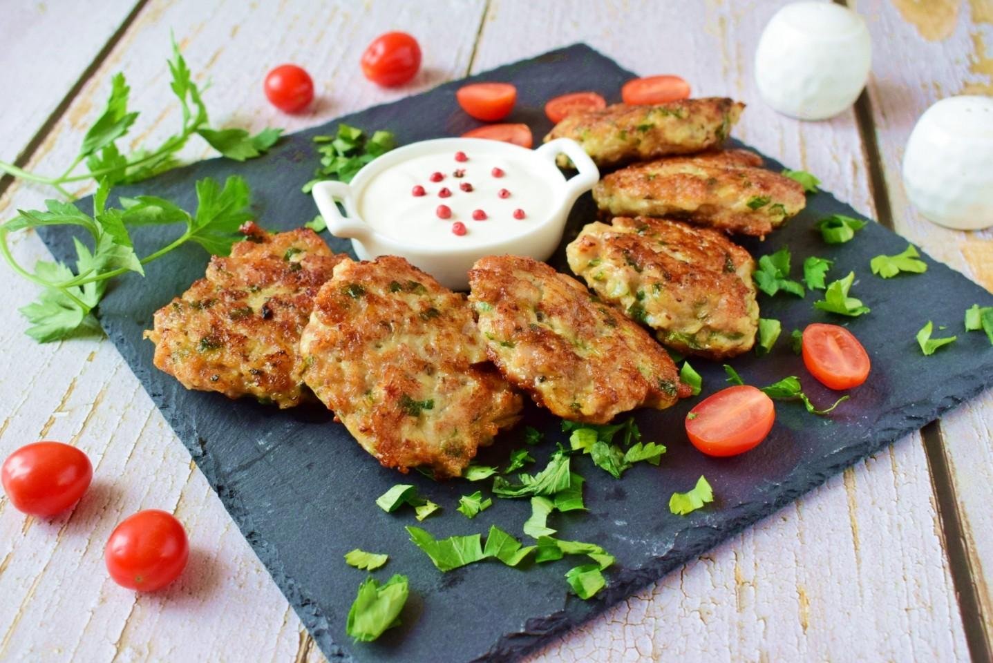 - Įkaitinkite keptuvę su trupučiu augalinio aliejaus ant vidutinės ugnies. Šaukštu į tešlą berkite vištienos krūtinėlę ir dėkite ją į keptuvę, suteikdami jai apvalią arba ovalią formą. Kepkite ją iš abiejų pusių, kol gražiai paruduos.