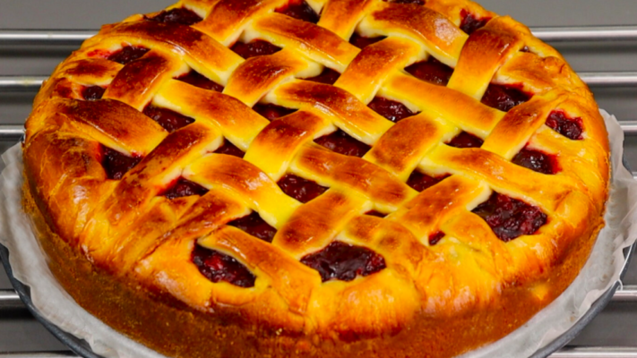 Pyragą kepkite 180 °C temperatūroje apie 40 minučių, kol taps auksinis. Paruoštą pyragą apibarstykite cukraus pudra ir patiekite.